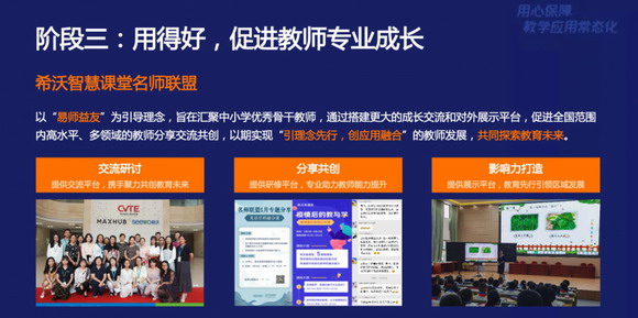 “學會用”、“用起來”遠遠不夠,還得“用得好”。教師需要不斷充實和提升自身技能,以適應教育信息化發展需求。對此,希沃易課堂多措并舉為教師提供多個研修平臺、更廣闊的交流研討平臺,聚集全國名師資源和力量,促進教師專業化成長。