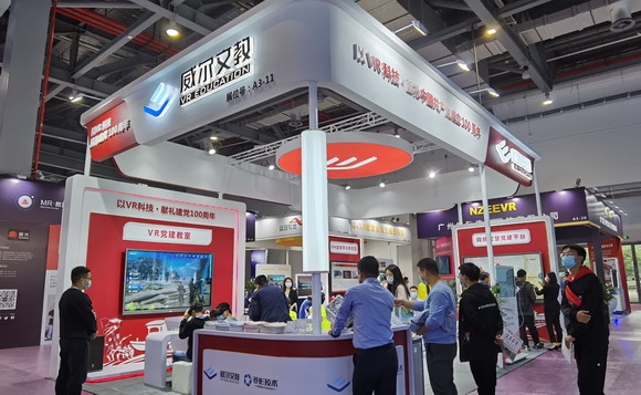 威爾文教紅色黨建展臺人頭攢動。在VR黨建教室里,體驗者頭戴VR頭盔沉浸于革命場景中。生動逼真的環境塑造,體驗者直呼穿越到了革命年代。與革命先輩一起征戰,一起經歷艱辛……傳統黨史的內容運用VR技術“真實”重現,讓歷史更鮮活,撼動體驗者心靈深處,從而弘揚紅色文化,傳承紅色精神。