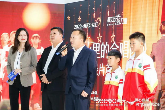 兒童清亮干凈的歌聲在展會現(xiàn)場響起,一個大山里的合唱故事開始娓娓道來,在設(shè)備缺乏、師資缺乏的情況下,大山里的孩子們?nèi)绾尾拍軋A他們的合唱夢,在希沃錄播設(shè)備的幫助下,城市與大山連結(jié)了起來,完成了屬于大山里的合唱表演。人們不自覺靠近、駐足、凝視。紀錄片終了,全場靜默片刻,突然爆發(fā)出掌聲。這是觀眾對希沃公益行的認可,也是希沃公益行想要傳達給所有人的力量!而后,片中團結(jié)小學的張校長、主演肖老師和小主演們也到達了現(xiàn)場,發(fā)表了內(nèi)心感言,分享公益為學校帶來的改變。