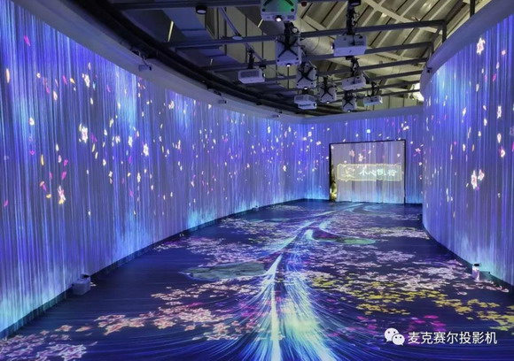 互動(dòng)展區(qū),麥克賽爾DLP激光工程投影機(jī)再次展現(xiàn)了投影魅力,呈現(xiàn)了一場(chǎng)沉浸式互動(dòng)體驗(yàn)光影展。環(huán)形排列的感應(yīng)玻璃,顯示出波瀾不驚的水面,觀眾用手將其連接,江湖瞬時(shí)連通,水中魚兒暢游、水母綻放。