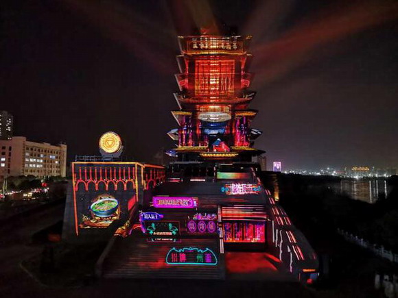 這座 90 米高的黃河樓位于甘肅省省會蘭州,是《大有蘭州》黃河樓光影秀的主角,該光影秀在今年國慶前的 9 月 29 日進行首演。這場如夢如幻的戶外演出通過先進的3D投影等科技手段和真人表演,以具有強烈視覺沖擊力的藝術效果,講述黃河和蘭州故事,為蘭州量身打造出一張城市新名片。