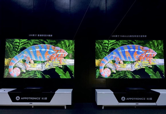 11月10日,光峰科技正式發布全球首款百吋柔性菲涅爾抗光屏,再展現強勁的顛覆式創新研發實力。該抗光屏以光峰科技自主研發的ALFA屏幕技術為核心,實現了菲涅爾屏幕結構的柔性顯示(目前全球范圍內只有菲涅爾硬屏),解決了傳統投影屏幕低增益、亮斑、“鬼影”等諸多痛點,0.5毫米的厚度,比硬幣更薄,成本及性能大幅領先市場現有產品,將為消費者創造便攜大屏的互動娛樂體驗,滿足豐富多樣的應用場景。