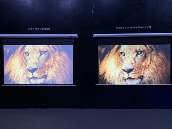 轉到投影顯示領域,最核心的配件莫過于屏幕了。一塊性能優越的抗光屏幕,不僅能提供大屏、震撼的視覺環境,還能有效解決環境光帶來的影響,保證畫面中每一個明暗細節都能清晰展示,為用戶營造影院級的沉浸式體驗,進而推動智能投顯領域新的發展。