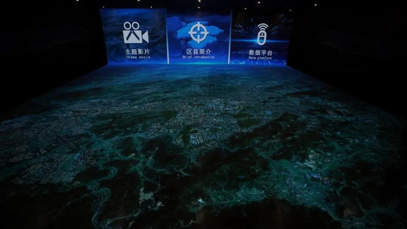 環繞式投影配備互動解決方案,當觀眾想了解萍鄉的重要生態區建設規劃時,點擊顯示屏即可看到萍鄉的山、林、湖等風景秀麗的畫面,充分發現萍鄉的美。
