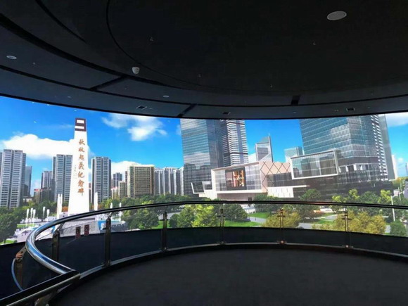 東方中原為萍鄉城市展廳打造環繞式互動桌,6臺索諾克SNP-ELX550S激光工程投影機投射在圓弧桌面,通過投影拼接融合技術,使畫面無縫拼接達成一個完整的圖像。