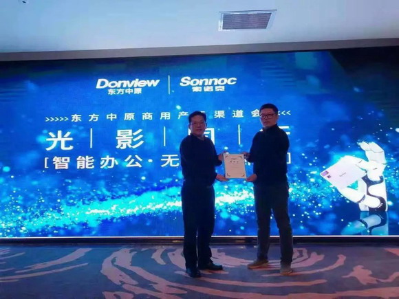 “投影機是中原持之以恒的戰略發展方向,做國產品牌投影機的No.1,是每個中原人的夢想,用中國之光點亮世界是我們索諾克(Sonnoc)作為民族品牌的使命和責任,更是每一個中國投影人的使命和責任!”西部營銷中心總裁吳洪剛為商用產品渠道會·鄭州站致開場詞,并介紹了西部營銷中心的業務模式及現場合作伙伴。他表示:“索諾克(Sonnoc)長江系列點亮了四個時代,即商務投影全激光時代、智能投影時代、超級性價比時代及超級售后服務時代。”