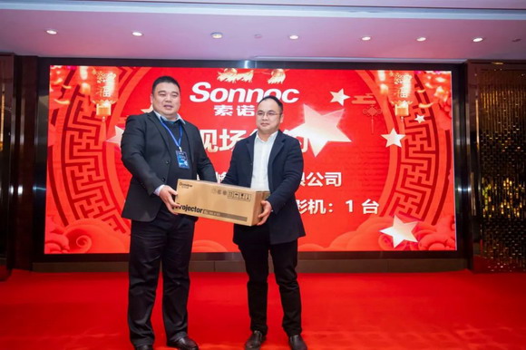 現場活動溫馨、熱鬧,東方中原的新老朋友齊聚一堂,圍繞產品和合作互相交流。東方中原集團CEO朱諄先生在晚宴前進行了致辭,對來到活動的渠道伙伴表示了感謝,并強調索諾克(Sonnoc)就是要做中國投影機的No.1!也誠邀各位和索諾克(Sonnoc)一起共赴未來!