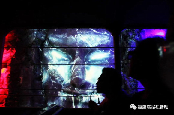隧道內的幕布根據不同的場景做了異型包裝,贏康科技參與了異型投影片源制作過程中的溝通、測試等工作,經過20次的反復測試和調試后,畫面與幕布精確匹配,投影與場景完美融合,效果更加真實。