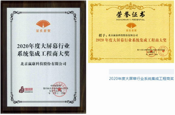 經(jīng)過專家組、評委組、網(wǎng)上投票等多種方式層層篩選,贏康科技榮獲“2020年度優(yōu)秀案例”與“2020年度大屏幕行業(yè)系統(tǒng)集成工程商”兩項大獎。