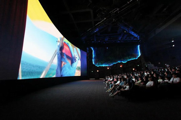本次獲獎的案例是銀基動物王國項目。銀基動物王國由國際頂尖設(shè)計師精心打造,占地約570000平方米,總投資約50億元,擁有六大主題區(qū)域,集動物展示、科普教育、游樂設(shè)備、劇場表演、4D影院等多功能于一體。贏康科技為該樂園的“里約大冒險”4D影院以及“生命之樹”投影秀進(jìn)行了投影系統(tǒng)建設(shè)工作。