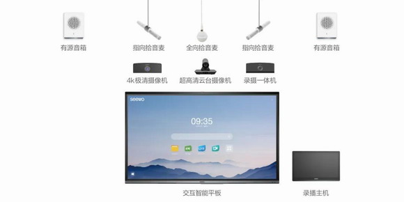 針對偏遠(yuǎn)地區(qū)教學(xué)點打造簡單易用、高性價比的聽課教室的需求,希沃推出對應(yīng)的解決方案——錄攝一體機+全向拾音麥。