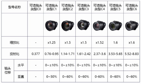此外,PJ LU9080和PJ LU10600還是可換鏡的工程投影機,有七款可選鏡頭,并支持鏡頭記憶功能。從超短焦、短焦、標準、長焦到超長焦鏡頭,能呈現各種投射比例和距離,其中投射比為0.377:1的C0鏡頭是理光自主研發生產的反射式超短焦鏡頭,0.95M左右即可投射120英寸超大畫面,即使在狹小空間里也能實現震撼的視覺體驗。
