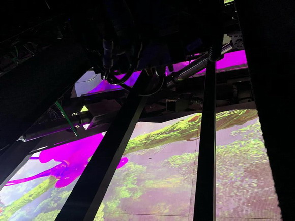 在艙內坐定后,游客立刻被全包裹的投影畫面所震驚,6K60幀高品質的立體影片從腳底到四周再到頭頂,覆蓋了眼之所及的各個角落,高度沉浸的效果讓游客掙脫了座位的束縛,仿佛置身影片之中。