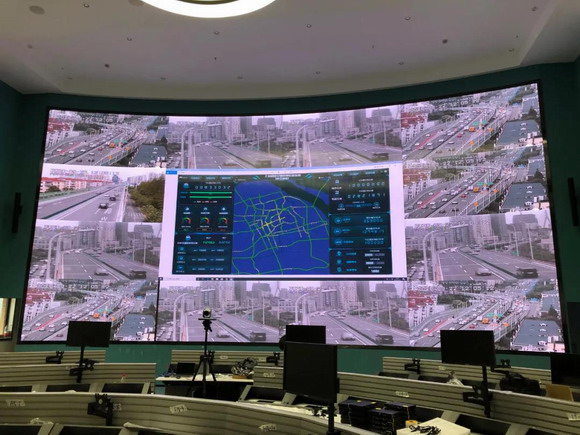 上海市交通委員會交通指揮中心項目COB超高清顯示主屏寬12.16米、高5.814米,分辨率7680點×3672點,通過弧形拼接實現70.7平方米整屏無縫顯示。