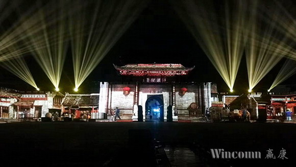 該演出中的古城樓,城墻部分長113米,城樓的最高處為17米,城墻和城樓之間的前后縱深達35米,是一座氣勢恢宏的經典古代城樓建筑, 建于唐朝元和十一年,距今有一千一百八十多年的歷史。贏康科技憑借豐富的古建筑項目經驗,為該項目采用了十余臺激光投影機,根據建筑的特點采用了20000流明、17000流明和13000流明等不同亮度投影機,進行靈活的混合設計。該投影方案從設備的高亮度需求,優質的畫面呈現,到系統的平穩可靠、靜音運行,都保證了上千余名游客的良好觀看體驗,呈現了一場細膩精美,綺麗驚艷的古城光影秀演出。
