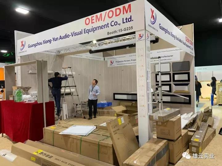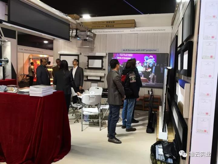 我們的展位呈現了客廳影院系統,家庭影院系統,會議視訊系統等多套系統。眾多高端產品:窄邊黑晶抗光幕、黑柵抗光硬屏、電動幕、豪華電動地升幕、隱藏天花幕等銀幕,還有高端系列吊架和高品質音視頻線材參展,吸引很多國外參展客商的眼球。