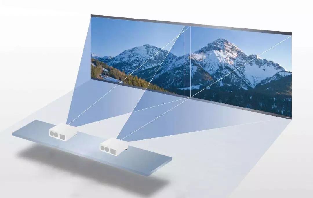 融合早已不是新技術,它的原理就是將一組投影機投射出的畫面進行邊緣重疊,并通過融合技術顯示出一個沒有縫隙更加明亮,超大,高分辨率的整幅畫面,畫面的效果就象是一臺投影機投射的畫面。