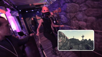 用戶佩戴上Oculus VR頭盔,就可以在實體店中探索山區(qū)景觀,其中動作捕捉還可讓用戶探索山腰等危險地段,繩索走道和搖動木板等觸覺元素也使之成為最具沉浸式的VR體驗之一。