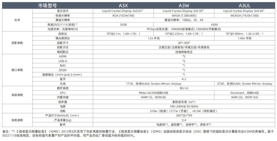 寶視來智選A3系列智能投影機應用3LCD技術,擁有更高的色彩亮度,能很好的還原色彩,讓畫面表現更精彩飽滿,拒絕暗淡畫質,從而真正享受大畫面。三款機型A3X、A3W、A3UL帶來3500-4200(ISO)流明真實亮度精彩大畫面,讓您無論白天還是夜晚,都可在客廳、餐廳、會議室等各種空間隨時應用,甚至創造300吋大畫面的沉浸式體驗。