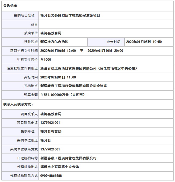 采購項目名稱: 精河縣義務段12所學校錄播室建設項目