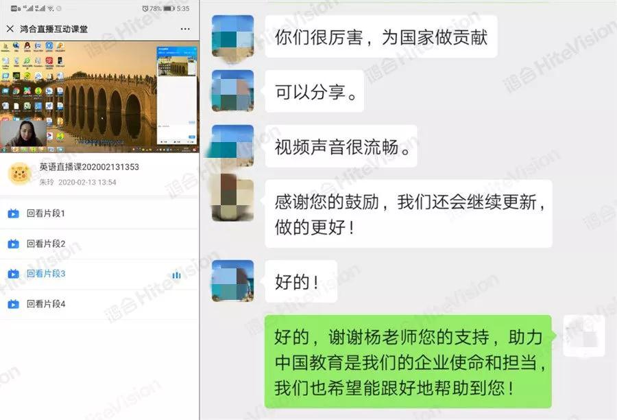 從2月8號開始使用鴻合直播互動課堂到現在,我總結了這個產品的幾方面優勢,跟大家分享一下。第一、軟件操作簡單,教師容易上手;第二、學生不需要下載任何軟件,直接掃碼便可進入課堂;第三、該軟件更新速度快,總是能很快滿足我們老師需要的新功能;第四、老師上完課后,它的回放功能特別實用,可以滿足其他網絡差的學生進行課后觀看;第五、該軟件容量很大,不限制在線聽課人數。總體我覺得很不錯,已經推薦給了其他老師朋友使用。