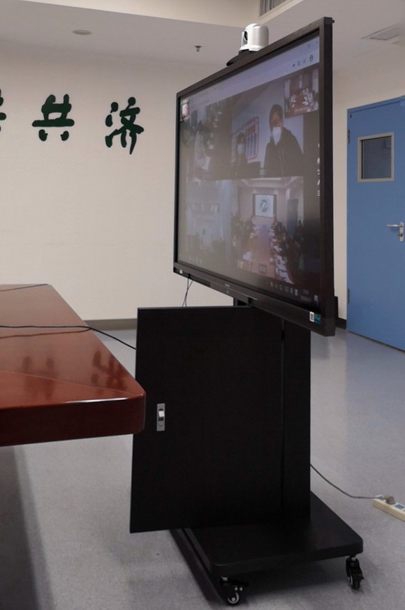 2月17日,中央指導組來到武漢同濟醫院,同一線醫務人員座談,并通過newline會議平板視頻連線金銀潭醫院、武漢協和醫院等定點醫院,與專家團隊溝通抗“疫”方案。央視新聞聯播也在第一時間進行了報道。