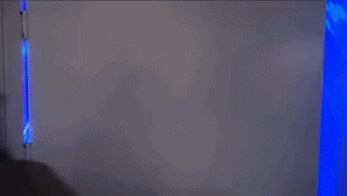 激光畫面投射到水霧上,呈現立體動態效果,仿佛物體懸浮在空中。