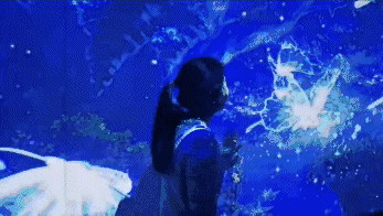 穿過這扇門,我們瞬間穿越到了夢幻的水族館。這是由四臺長虹激光電視+環幕技術打造的神奇空間,順利激發出倩妹的少女心,開始旋轉:
