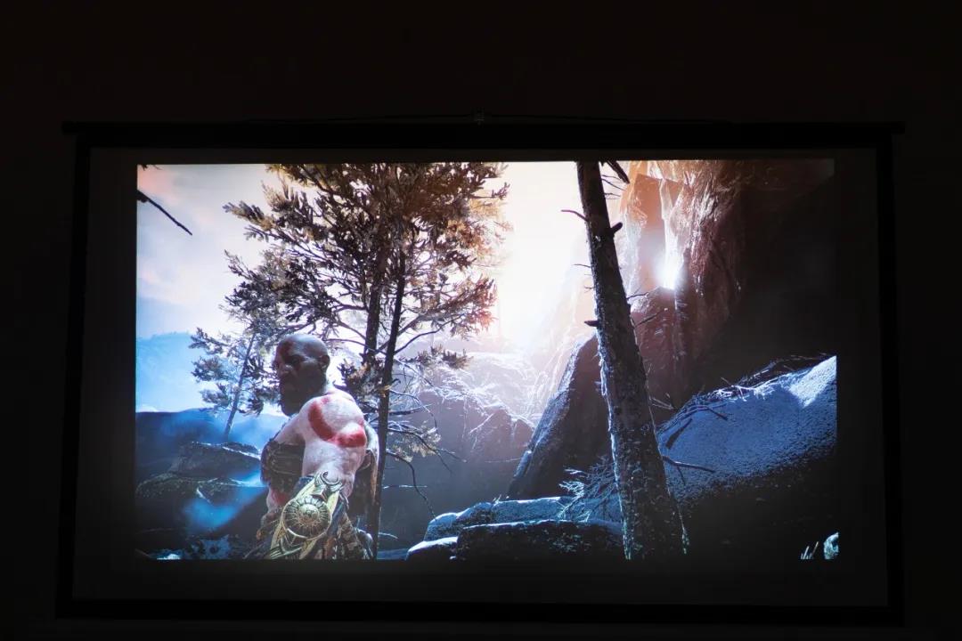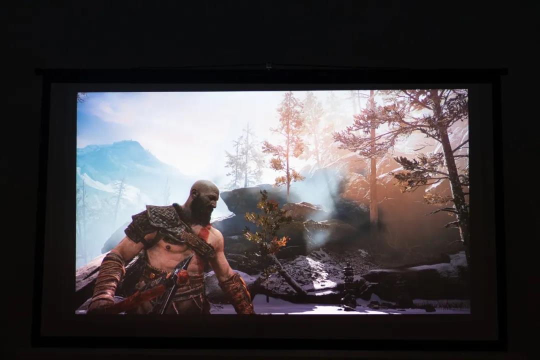 這是很多游戲博主體驗家用投影機后的感受,他們把家用投影機稱作“全景外設”,100英寸大畫面,整個游戲世界被等比例放大,逼真的武器、沒過膝蓋的草叢、氣勢3米8的厚血Boss。因為畫面放大,玩家們可以更好地進入游戲世界,感受小屏幕難以提供的臨場感,就像是被直接“空投”到熟悉的戰(zhàn)場。環(huán)顧四周,這地兒我熟。