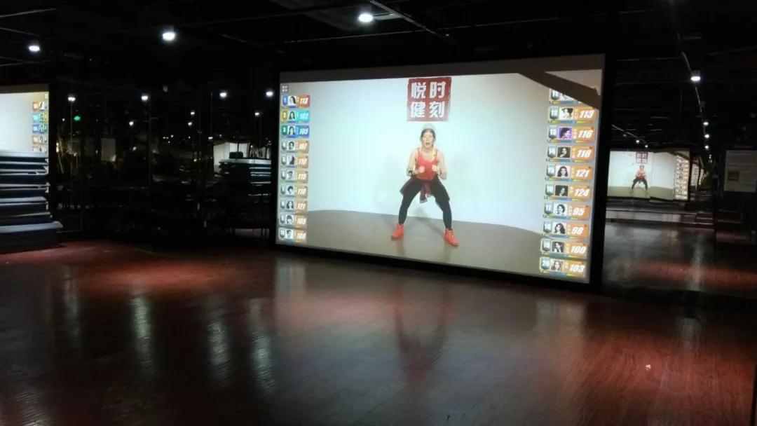【轉型措施】適應現(xiàn)代白領快節(jié)奏生活,打造智能健身房,使用長虹D5F激光電視入駐無人團操館,每小時1節(jié)視頻課,從早上7點開始至晚上23點不間斷運轉,會員隨到隨練,私教空閑時在旁邊輔助指導
