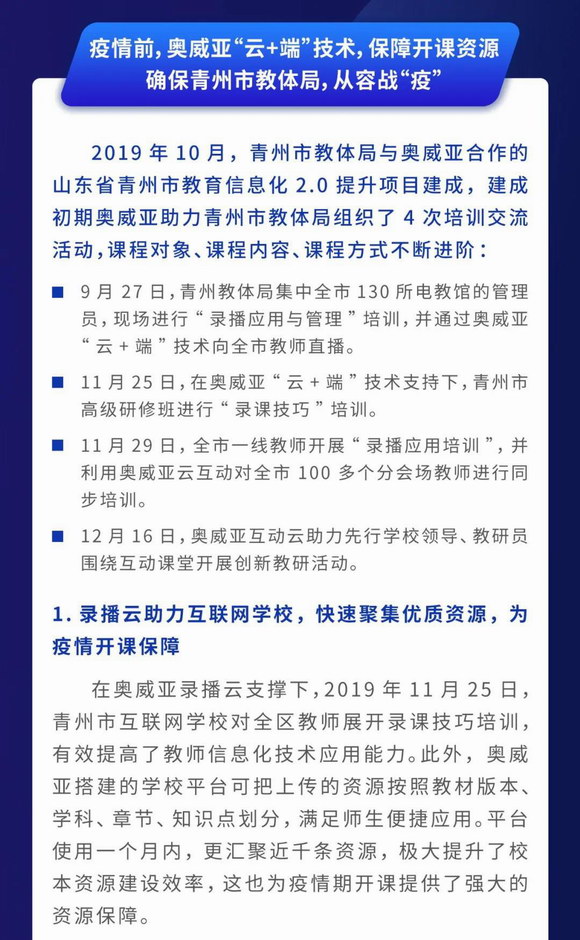> 奧威亞“云+端”技術 助山東省青州市教體局“停課不停學”
