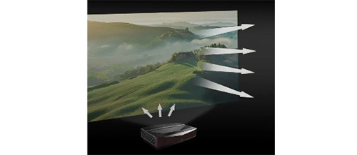 華錄激光電視采用漫反射成像:主機光線先投射到抗光幕上,再通過反射進入人眼。相比采用直射光的液晶屏而言,采用漫反射原理的華錄激光電視顯示畫面更柔和, 孩子的眼睛不會直視光源,長時間觀看也不容易視覺疲勞,更好地呵護他們的雙眼。