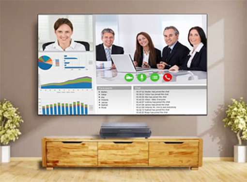 華錄激光電視支持手機、ipad無線投屏,可以清晰顯示手機、ipad辦公軟件、視頻軟件信息內(nèi)容(例如:釘釘、WPS),將移動終端中的會議討論資料(PPT、Word、Excel)、視頻內(nèi)容投屏顯示,傳輸信號穩(wěn)定,方便公司主管、員工、客戶在視頻會議中的溝通交流、及時反饋工作信息,保證工作進度。
