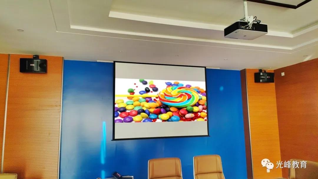 采用光峰激光高亮投影機,清華同款,鏡頭居中、顏值高、亮度高、畫面清晰、圖像顯示效果好。兩臺光峰激光高亮投影機融合,超大畫面超高亮度,保證大教室里每個人都能看清畫面內容。