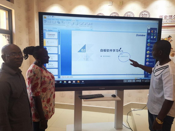 為馬里魯班工坊配備的Donview 電容觸控液晶一體機,配置法語版本的系統及軟件,當地老師可以很便捷的在教學中使用,增強教學的互動性,同時也讓老師和學生體會我國信息化多媒體的先進性。