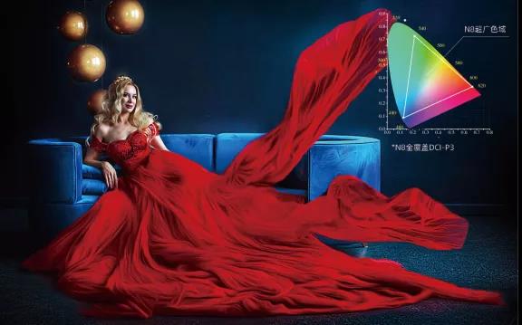 N8采用紅藍雙色激光光源,相比傳統的藍色單色激光,增加了紅色激光,有效改善藍色激光色域不足,提升紅色光占比達到22%。在家庭影院中,N8能幫助用戶還原更多色彩細節,能夠輕松實現DCI-P3 100%,讓畫面表現更精彩飽滿。