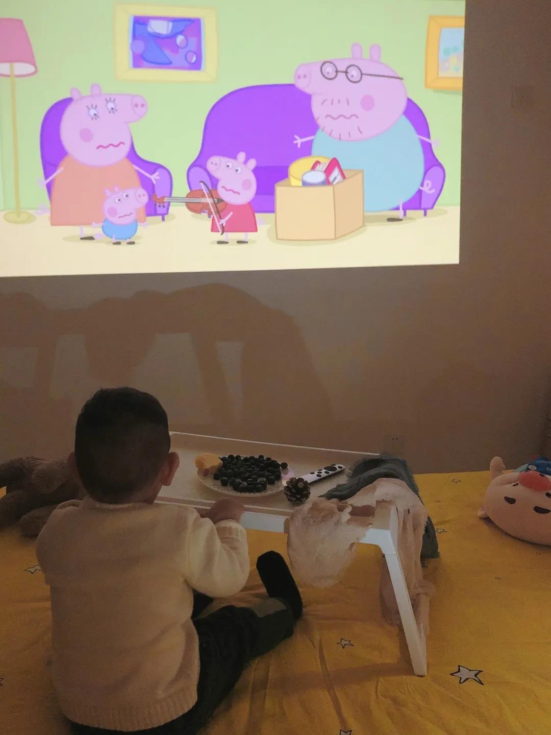 比如我跟小寶約定每天可以看2次,每次半小時。規定時限到了,我就會提醒他,并關掉投影儀,久而久之小寶就會遵循規定。而且既然孩子看動畫是不可避免且有益的,那么一款漫反射的投影儀,總比液晶電視或者ipad、手機等更柔和愛眼吧。