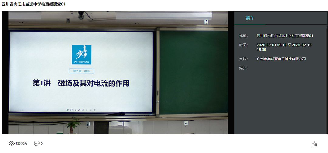 2月5日,威遠縣教體局針對全縣高三畢業班學生,特意通過奧威亞錄播設備開展在線教學活動。截止3月6日,課程直播點擊量超過2000萬人次,在線人數高達6000余人。