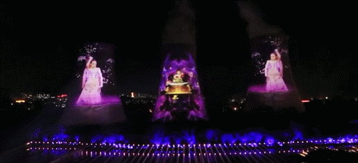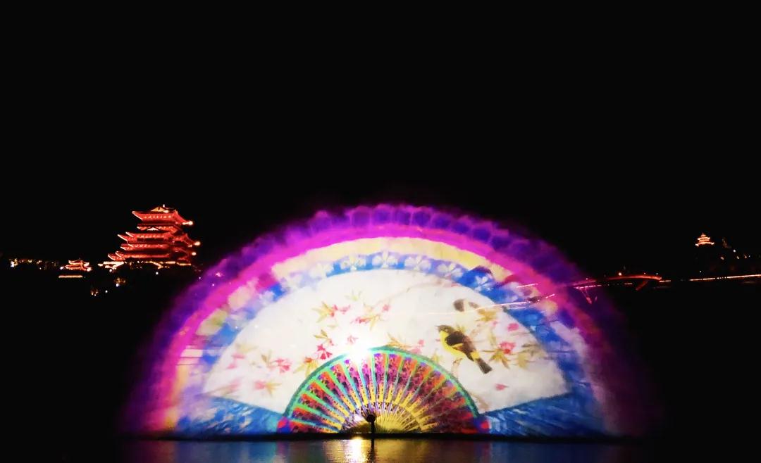 沙縣水幕秀采用NEC激光工程投影機,向河中1000平米的水幕(高20米,寬50米)投射精美的畫面,超高的亮度輸出保證了水幕的明亮呈現(xiàn),使這樣大型的水幕表演精彩萬分。