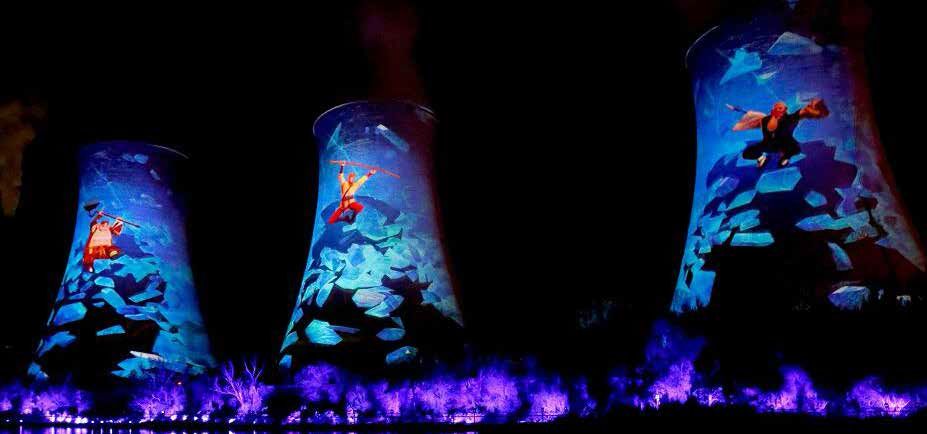 張家口下花園區(qū)蝶戀花文旅小鎮(zhèn)通過3座廢舊水塔創(chuàng)意打造了國際首創(chuàng)的高塔光影秀,其中采用12臺NEC 4萬流明PH3501QL+雙色激光工程投影機,投影面積達到15000平米,總亮度輸出達到24萬流明。高塔光影秀在河面上打造出絢麗多彩的燈光藝術(shù)舞臺,形成獨特的城市夜景,間接提升了張家口市冬奧會形象,成為張家口乃至河北省地標(biāo)性景觀。
