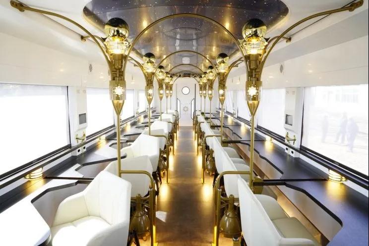 服務吧臺出售食物飲品及土特產,輪椅席及洗手間也一應俱全。在被包車時 1號及2號車廂的所有座席均可變為對面式或朝窗式。