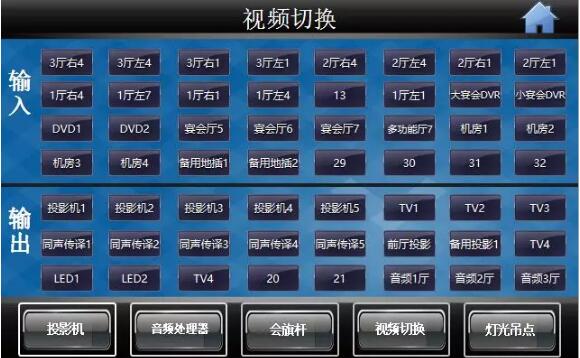 在該項目中,美國AURORA控制系統與視頻系統對整個會議中心所有會議室的AV設備及環境設施控制。所有視頻和控制系統都實現IP化。每個會議室都裝有一臺或多臺QXT-700中控主機,用于操作屏幕。在核心機房可以操作大宴會廳、小宴會廳和多功能廳的AV設備,實現在核心機房監視各個會議室的工作狀態。其他大、中、小會議室執行獨立控制要求,實現會議室開會內容保密。對現場AV設備投影機、音頻處理器、時序電源、矩陣、燈光和升降架等設備進行控制。IPX分布式矩陣為該項目的音視頻傳輸介質,大小宴會廳和多功能廳共用了80多個IPX單元,實現各個會議室之間信號互聯互通。通過AURORA中控系統可以快捷、準確的控制會議室內的設備,使原本復雜的操作變得直觀簡便,減少了誤操作的可能,從而更好的保障了整個會議室的使用。