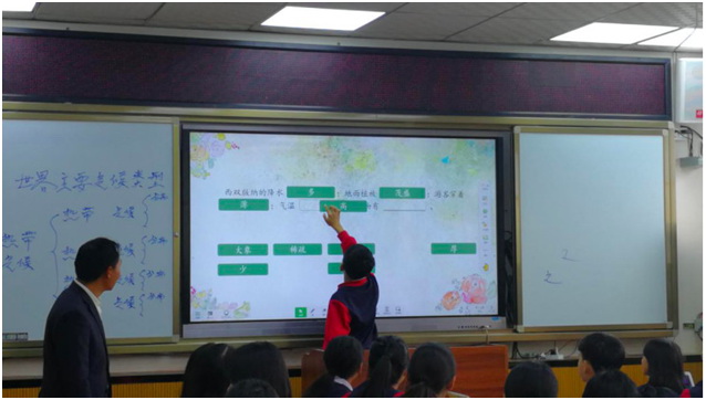 “解析一篇課文的重難點,我會讓學生分組討論。比如說這個文段運用了什么修辭,在文章中該不該刪掉。討論后,讓他們用平板拍照,上傳至一體機。”段老師發現,因為有了展示任務,學生就會試著動動腦,動動手。