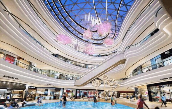 在這里,科技與自然竟然能夠和商業體驗如此巧妙融合,不僅鳥語花香的綠意森林置景,還有蔚藍壯闊的海洋。