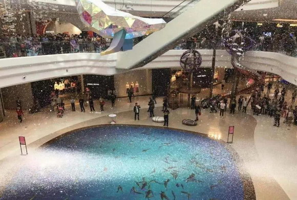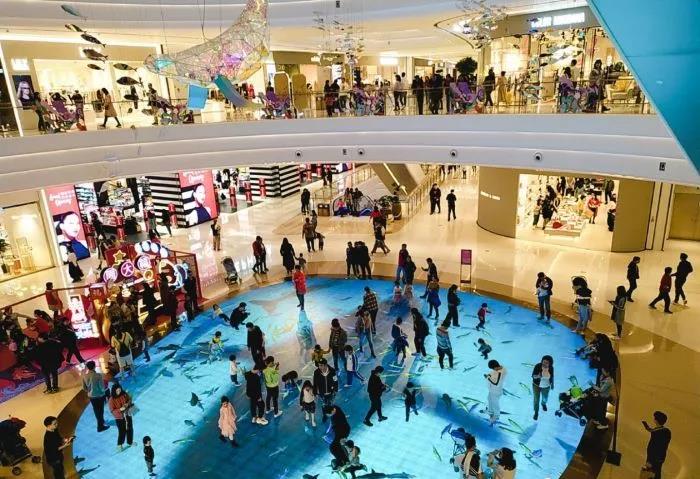 水中庭:海之心LED互動地幕秀,隨時與深海精靈上演親密接觸,內設跨層螺旋星語滑梯,讓人們回歸童年的冒險世界;