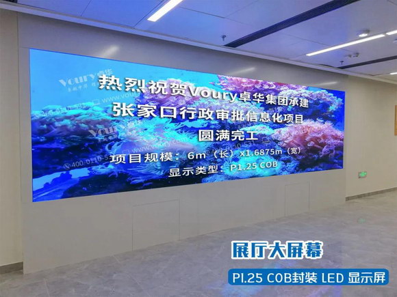 為進一步加強黨支部的陣地建設,提高基層黨支部工作的科學化和規范化水平。Voury卓華ZHVW-12C系列COB封裝LED顯示屏應用于張家口市行政審批局黨員活動室,以其無縫拼接、超高對比度、超高刷新率、豐富顯示色彩等調試效果,受到各位領導的一致好評,有效提升拼接屏幕的易用性,提升黨員使用體驗。