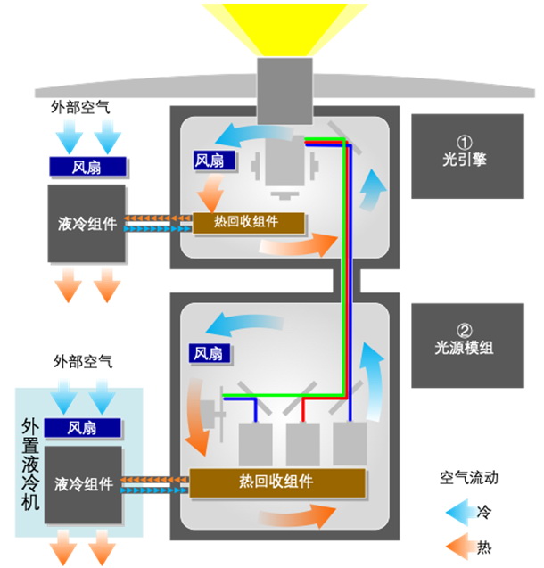 NC1402L+采用光源內置一體化設計,無需外置排風系統。整機結構設計緊湊,體積小、重量輕使得安裝更加的靈活方便,適用于中小型影院的吊頂安裝。