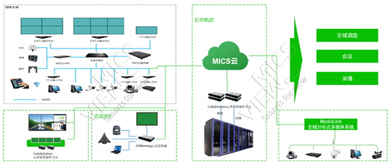 MediaLink全域分布式多媒體系統(以下簡稱“MediaLink”)是MICS云實現信息融合、共享協作的基礎。MediaLink可將各類業務系統、信息平臺、控制設備連接至MICS云中,并完成信息傳輸、管理、分發調度、業務聯動、可視化交互等多維融合,實現跨地統一管理與協同應用。它可獨立作為分布式系統使用,也可作為MICS云的入口。