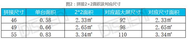目前從拼接屏主流尺寸來看,主要為46、49、55寸,大屏對該部分市場替代主要可由三個尺寸進行替代,分別為92、98、110寸,理論上來說92、98、110寸可對任意偶數拼數(如2×2、4×2、4×4)拼接屏進行替代,但在實際應用當中,由于技術限制,超大尺寸面板的拼縫和拼接屏有較大差距,以98寸為例,目前市場98寸雙拼拼縫最窄也要在1厘米以上,與拼接產品拼縫規格相去甚遠,因此超大尺寸現階段只可對2×2拼接市場進行替代。