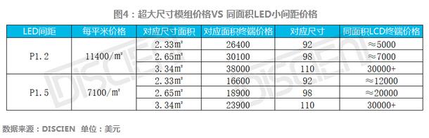 總體來看,在LCD拼接、超大尺寸LCD、LED小間距三者之間呈現的成本關系為LCD拼接<超大尺寸LCD<LED小間距。